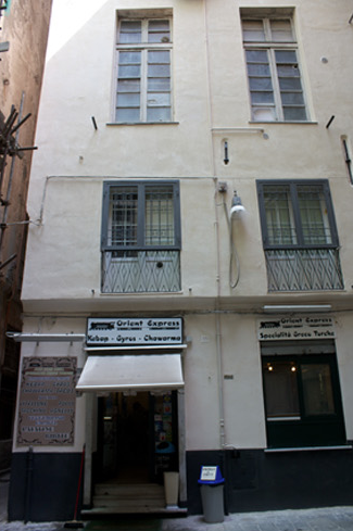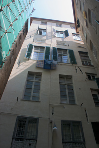 La facciata su vico dell'amor perfetto presenta tracce del paramento lapideo sottostante, beccatelli in mattoni, parziale arco acuto, bifore tamponate; si è deciso di ripulire e portare a vista il tutto con un trattamento adeguato da esterni.