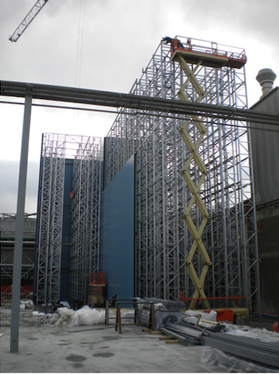 Le prime due immagini qui sotto riportate (partendo da sinistra) fanno riferimento al progetto per Uteco che prevedeva la realizzazione di un capannone autoportante per l’immaganizzamento di pallets, mentre l’ultima è relativa all’intervento per la creazione di un magazzino per lo stoccaggio di componenti per Iveco.